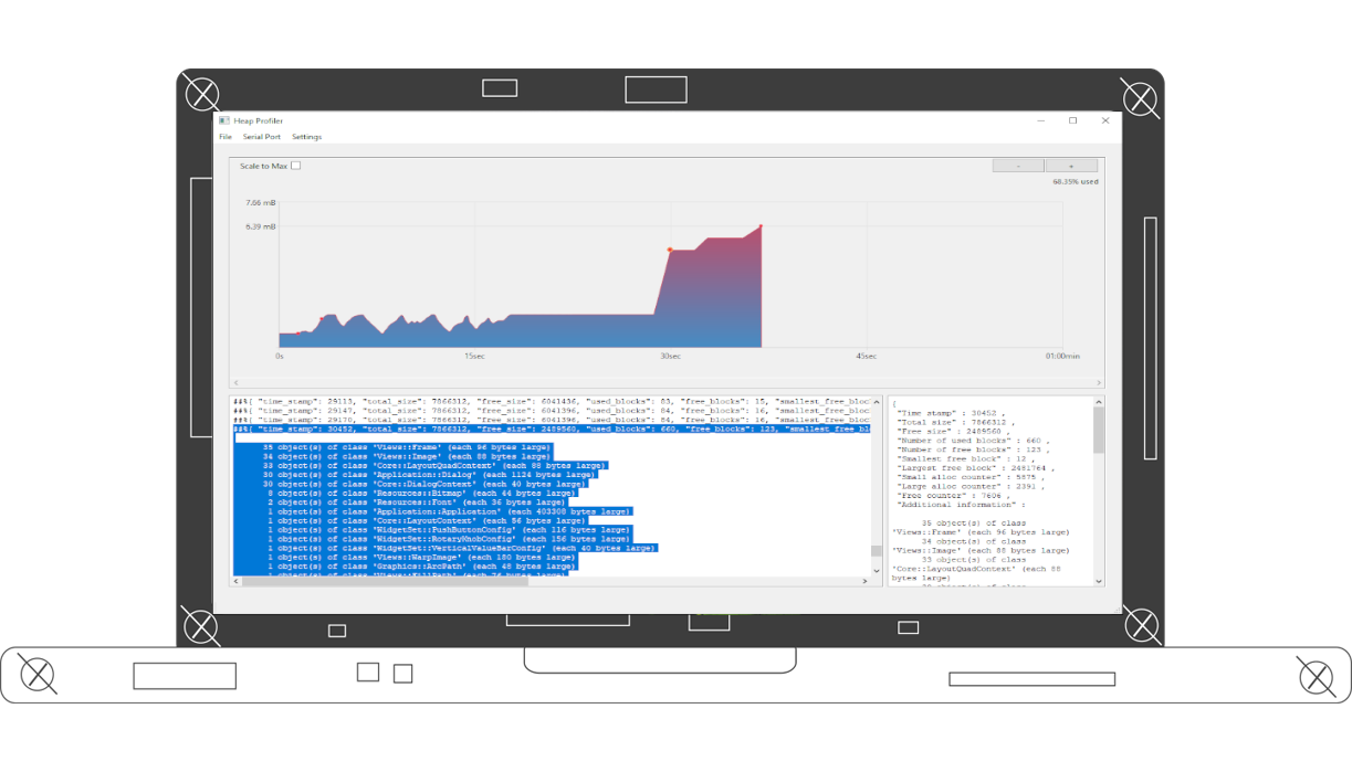 A tool or visualizing heap memory allocation for Embedded Wizard projects. Contains a module that can be added to existing projects for real-time on-screen visualization, and a desktop application for parallel monitoring through serial communication.