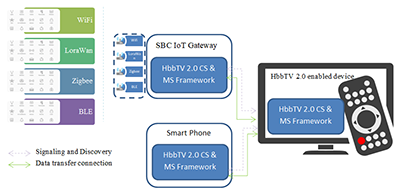 For the seamless integration of a variety of devices within the SH, HbbTV solutions are gaining a pivotal role, acting as a central hub for audio and video broadcasting services, home automation and other devices, including smartphones, tablets and Internet of Things (IoT)-enabled devices. In this context, a standard, compliant and platform independent, solution is preferred as it can enable dynamic environment where heterogeneous devices contribute to the overall user experience.