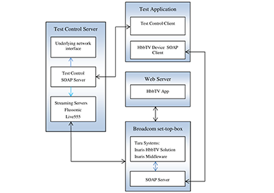 This paper presents an automated test execution environment designed to analyze the accessibility, reliability and streaming performance of an end-to-end Hybrid broadcast broadband TV (HbbTV) solution. Its purpose is to provide the means for the TV providers to test their HbbTV solution by simulating real-world scenarios and online functioning in a local, offline environment, before making it available for the end users. This way, common problems like server overload, poor streaming quality and HbbTV incorrect functionality can be foreseen and corrected.