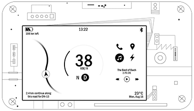Simple digital vehicle dashboard made in Embedded Wizard.